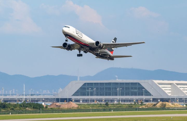 一架货机从鄂州花湖国际机场起飞。