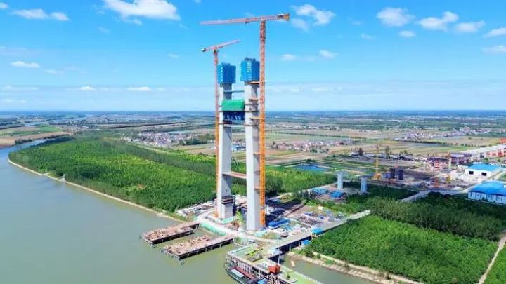 顺江而上,李埠长江公铁大桥建设同样热火朝天。目前,北岸主塔正进行第33节塔柱钢筋绑扎,锚体、散索鞍支墩正进行上下游第二层、第三层施工,奋力冲刺明年春节前封顶。