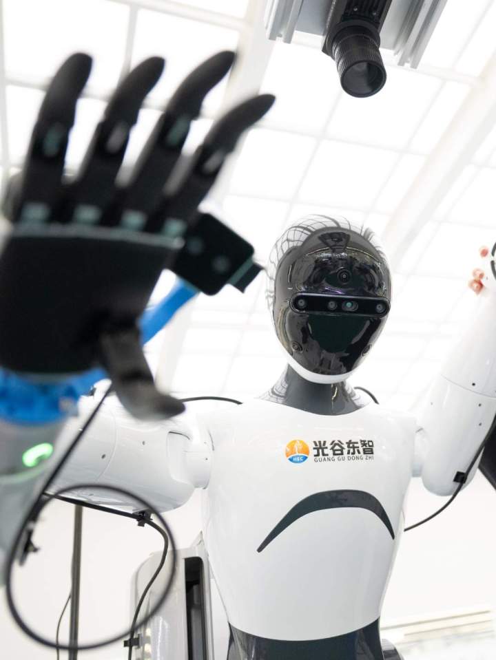 在湖北人形机器人创新中心,人形机器人正在进行调试。新华社记者肖艺九 摄