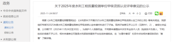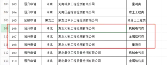 近日,水利部官网公布2025年度水利工程检测资质评审结果,荆门市城市水务集团有限公司下属子公司湖北大衡工程检测有限公司(以下简称“大衡公司”)申报的金属结构类、机械电气类、量测类三项甲级资质顺利通过。结合此前已获的岩土工程类、混凝土工程类甲级资质,大衡公司成功跻身水利工程检测“五甲资质”行列,为企业高质量发展注入强劲动能。