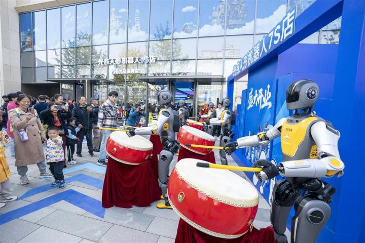 11月11日,全国首家人形机器人7S店在光谷开业,湖北自主研发的智能人形机器人家族集中展示,正式以明码标价的形式走向市场。(湖北日报全媒记者 魏铼 摄)