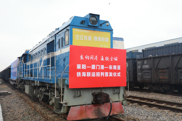 (“襄阳-厦门港-东南亚”国际铁海联运专列。资料图片)