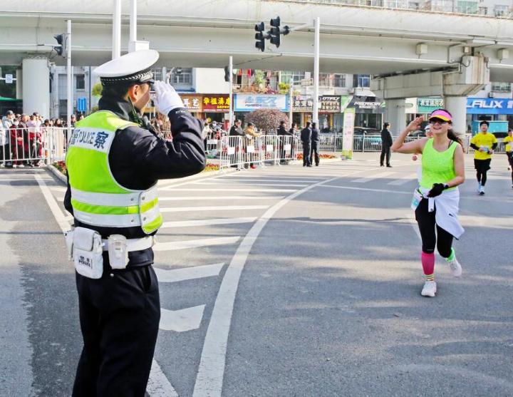 上午9时,比赛发令枪声响起,黄石市公安局交通管理支队情指中心负责人王兴华和同事们在大家看不见的后台,开始了属于他们的“马拉松”。只见王兴华一边手持警用对讲机,不停调派着路面民警开展交通疏导,一边紧盯监控大屏实时关注赛道情况,并及时向现场执勤民警发布指令,确保赛事平稳有序进行。当马拉松选手陆续冲线到达终点,王兴华还要根据最后一名选手的赛程情况,适时取消各管制路段。“既要让选手在赛道上跑得安心,也要让大家在路途上走得顺心。”