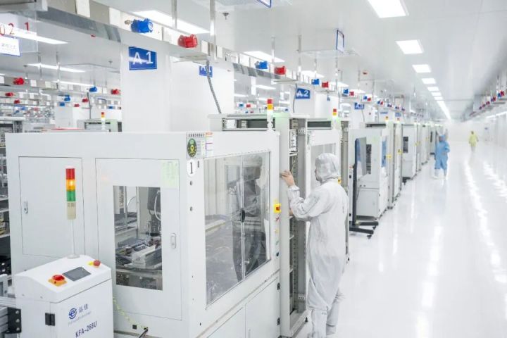 华工科技光电子信息产业研创园洁净厂房,正在生产高速光模块。(魏铼|摄)