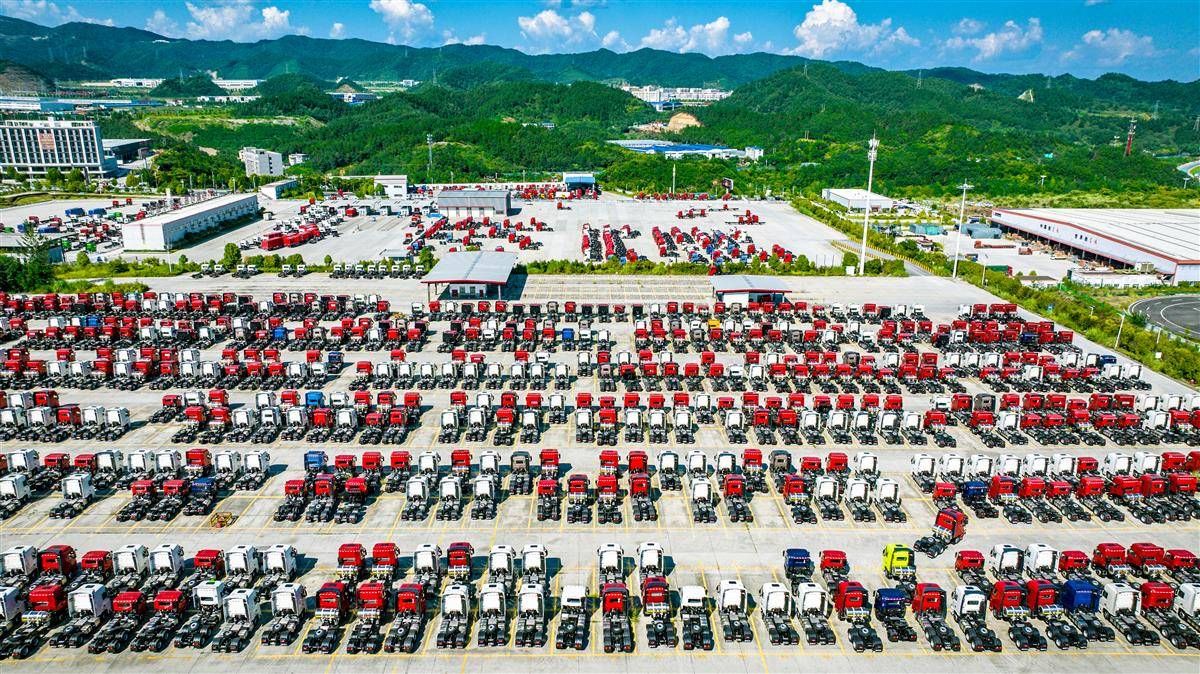 在茅箭总装的全系列东风商用车整装待发。