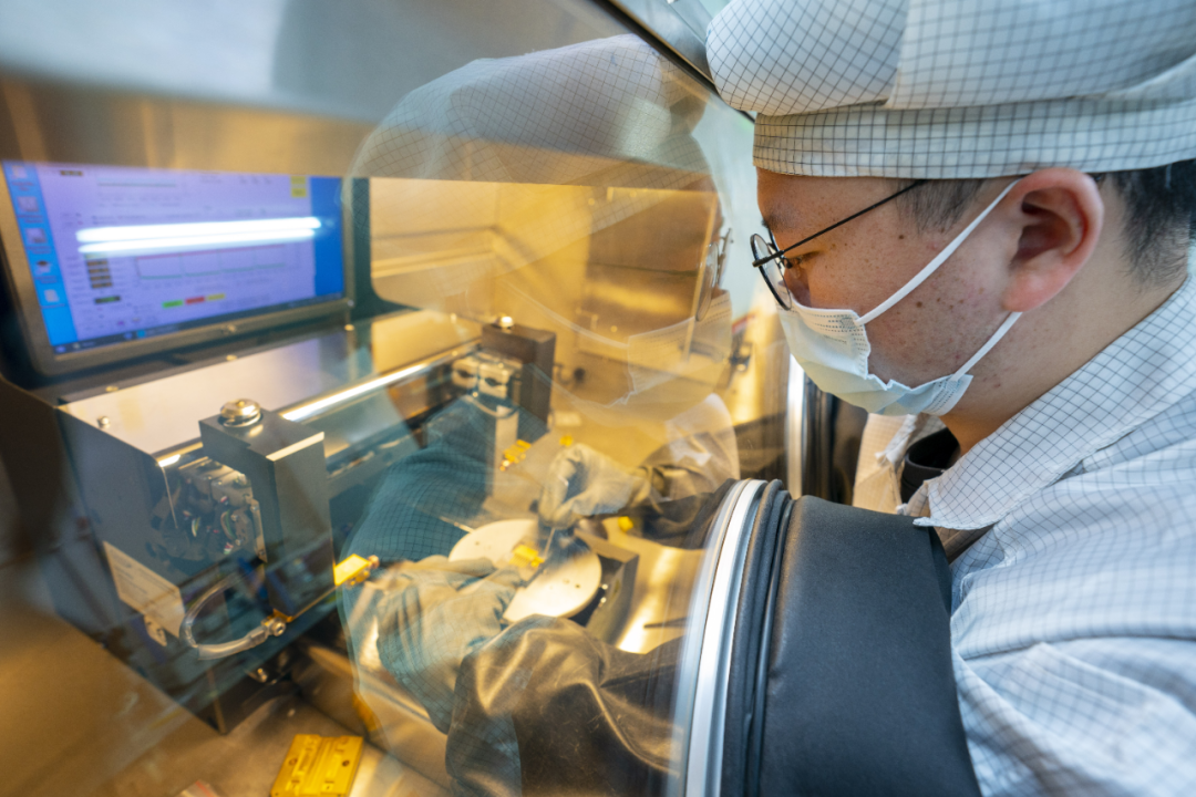 国家信息光电子创新中心无尘实验室内,工程师操作设备完成对平行封焊工艺,实现器件气密性封装。(魏铼|摄)