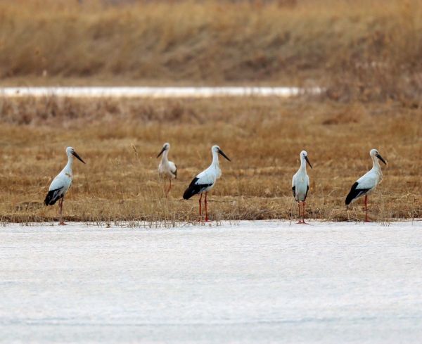 2020年3月22日,东方白鹳在查干湖畔休憩。查干湖通过巡护排查、伤鸟救治、智慧监测等举措,为候鸟提供优质的栖息环境和安全的迁飞通道。截至2025年11月3日,查干湖的国家一级重点保护鸟类由过去的8种增加至17种,国家二级重点保护鸟类由过去的35种增加至52种,东方白鹳、白皮鹭、青头潜鸭等珍稀濒危鸟类也会选择在查干湖筑巢繁殖。