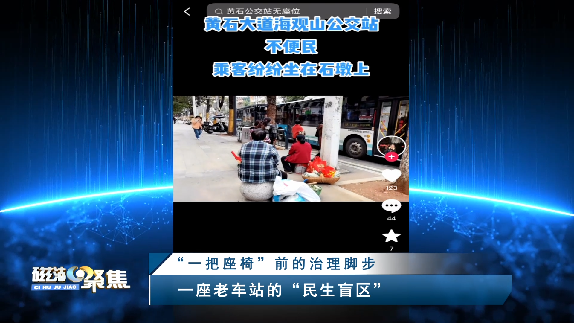 前不久,一位市民随手拍了一个视频发到了网上,公交站旁,几位老人坐在石墩上等车。本以为只是一次寻常的“吐槽”,但这条视频,却被一双“眼睛”悄然盯上了。这是一双不属于12345热线的“眼睛”——它不等投诉,只找问题。本期《磁湖聚焦——营商环境观察》,就从这一把“缺席的座椅”开始。