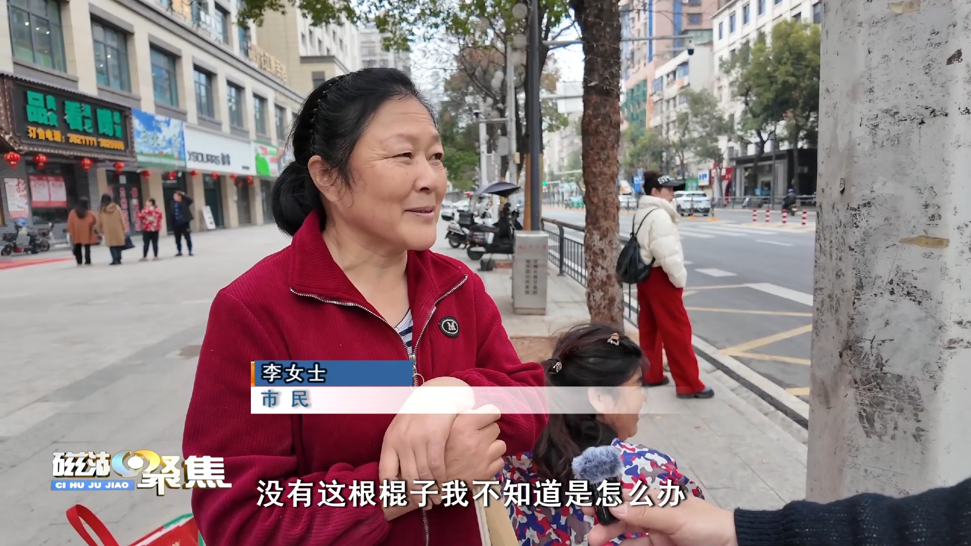 市民 李女士:回四棵(社区),你看我拿个棍子一杵着,没有这根棍子我不知道怎么办。