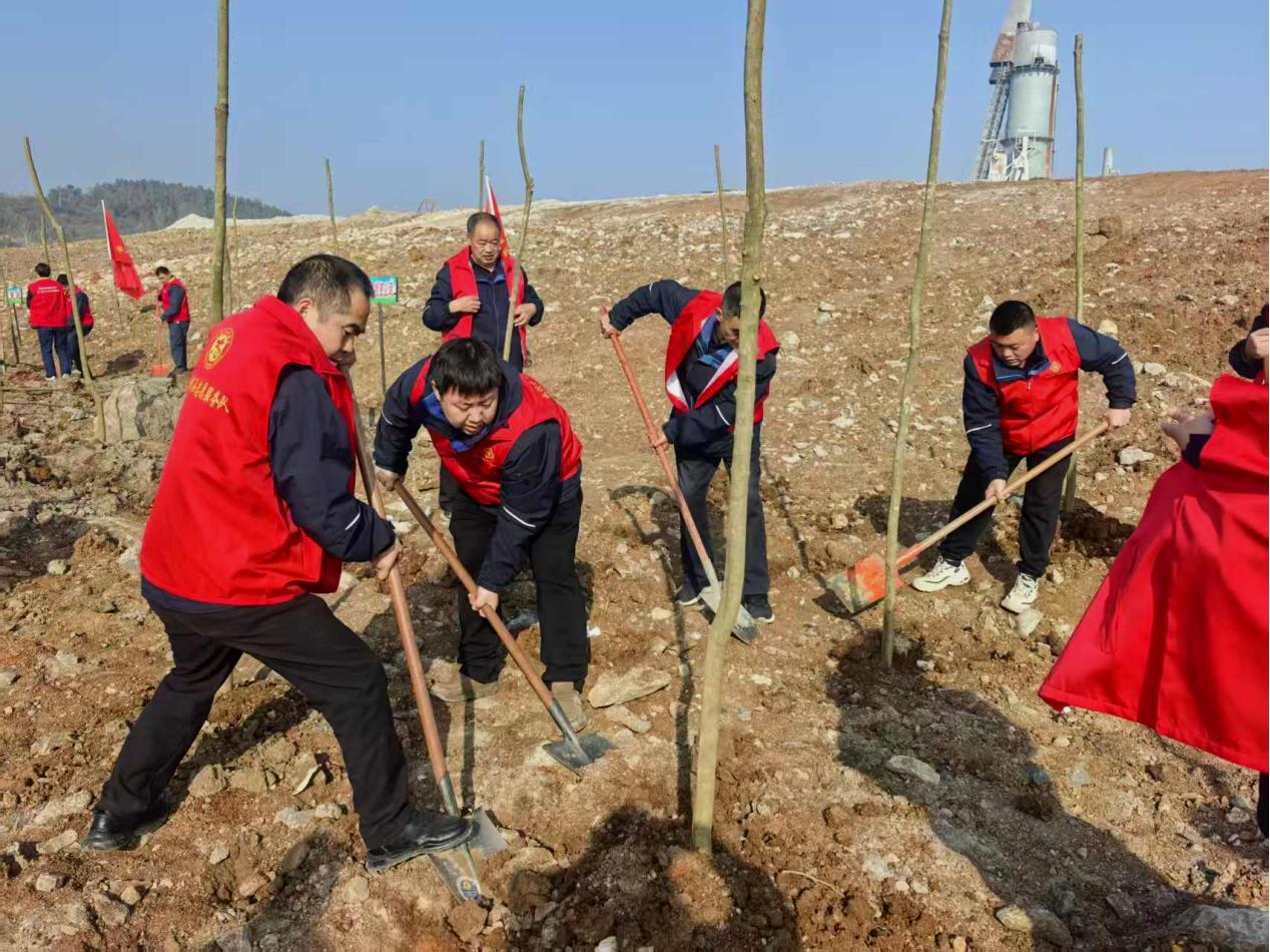 屈家岭水投公司14名干部职工们分工协作,挥锹铲土、扶苗填坑、提水浇灌,每一个环节都一丝不苟,干劲十足,现场一片热火朝天的景象。经过大家的共同努力,一株株新栽种的树苗在春风中昂然挺立,为昔日矿山披上了崭新的绿装,为初春的屈家岭增添了勃勃生机。