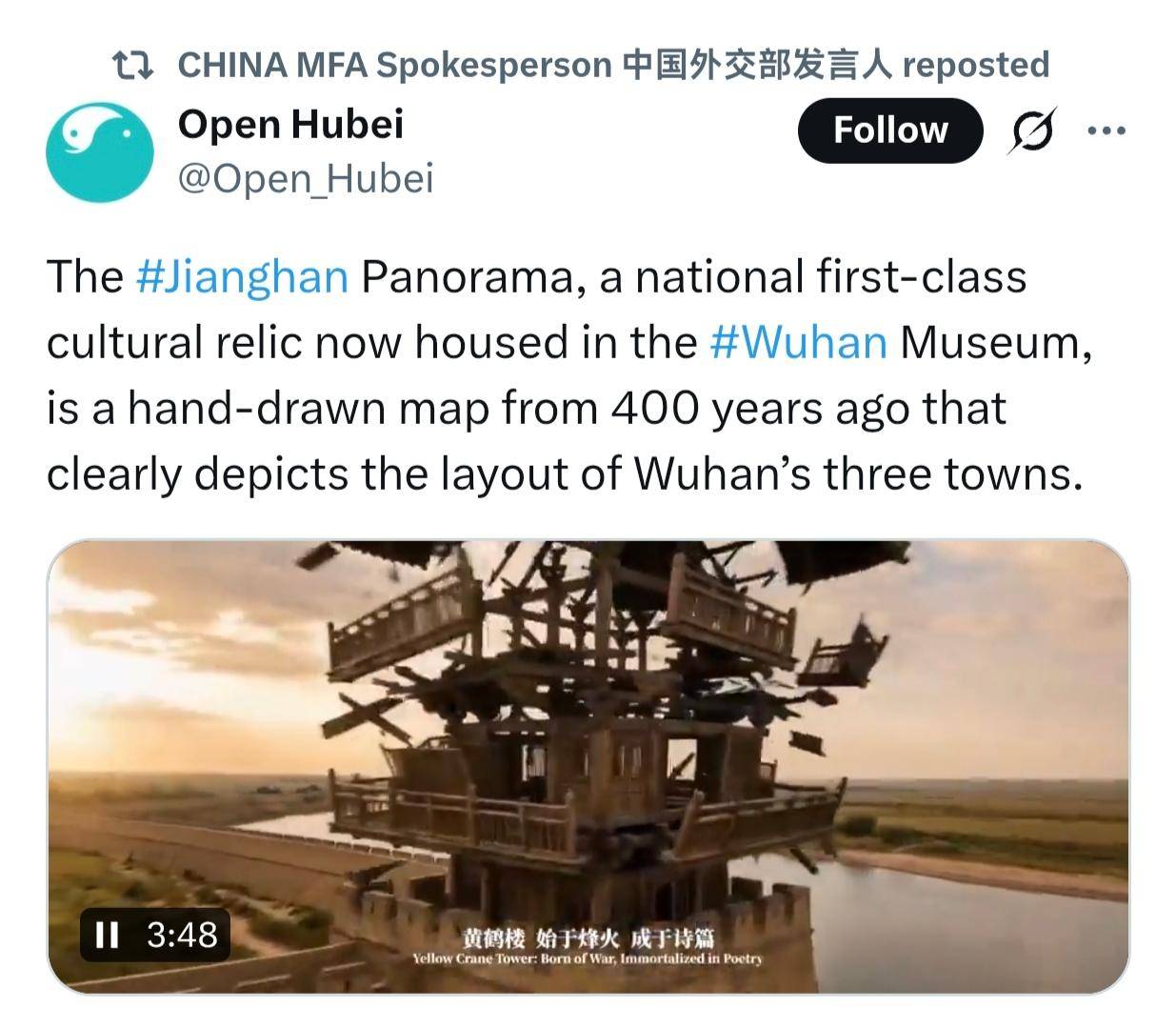 年初,武汉发布了“江汉揽胜”主题游线路,这一名称正是源自这幅传世古画。该游线以百年轮渡为纽带,串联5A级黄鹤楼景区与4A级知音文化旅游区,生动展现武汉“半城山水半城诗”的城市意象,让“江汉揽胜”从一幅可供考据的珍贵古画,变成了一条游客打卡的主题游线。