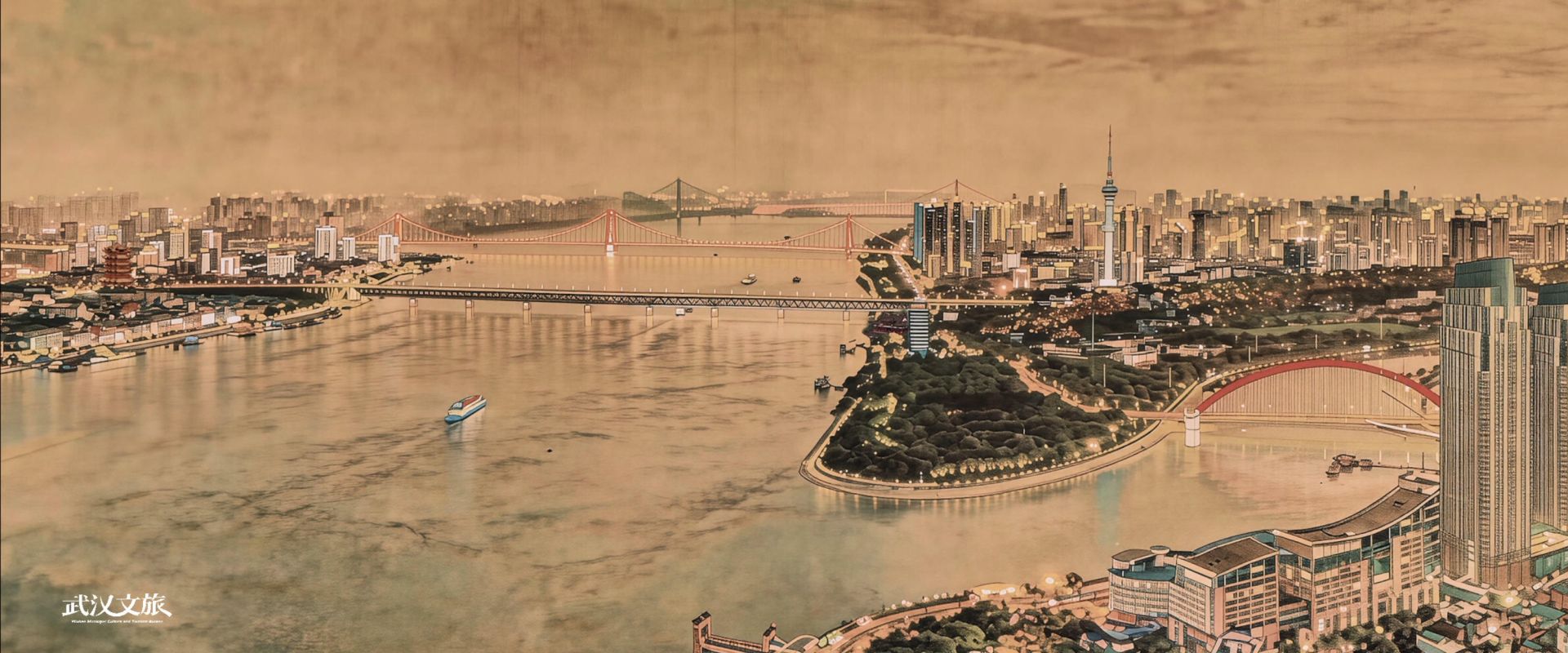 这次相遇,也被400年前的画笔定格,黄鹤楼巍然耸立,晴川阁隔江相望,长江之上千帆竞发,这是明代《江汉揽胜图》中“江汉朝宗”的盛世图景,也是新时代的“江汉揽胜”。