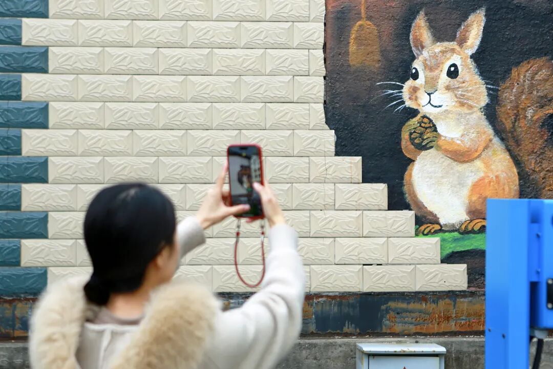 “孩子每天放学都要带着同学们来拍照,还跟同学炫耀‘这是我们小区的墙’。”居民蔡明霞笑着说,以前墙面单调,孩子放学也没个好玩的去处,如今,孩子们围在墙前指认图案、嬉笑打闹,小区里也多了几分烟火气。