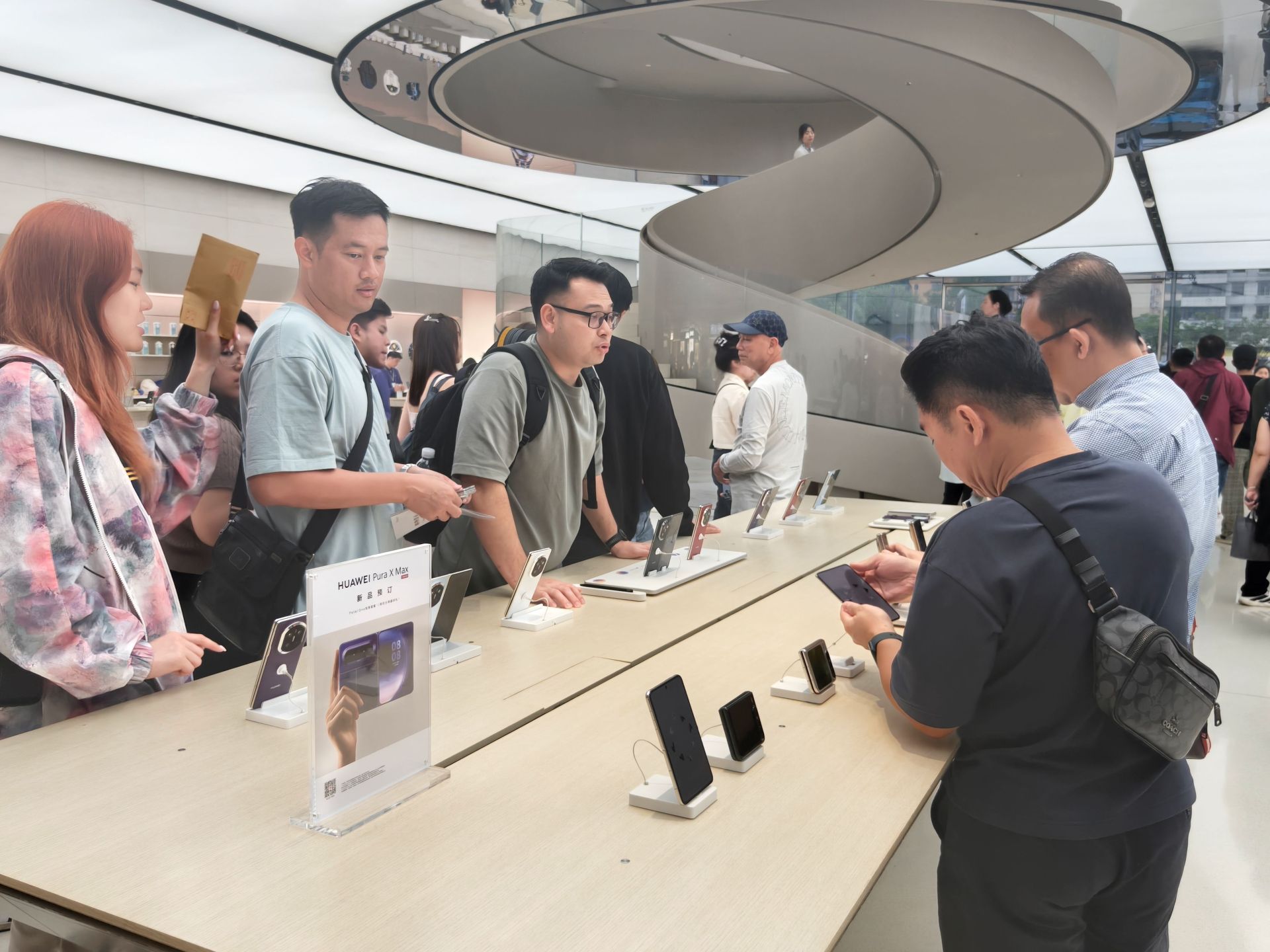 在华中最大的华为全球旗舰店,折叠手机、智能汽车、鸿蒙家居等科技产品让印尼考察团成员频频驻足。有人拉开汽车车门查看内饰,有人换上华为手表仔细端详,更多人则通过语音与智能家电互动,亲身体验“中国智造”带来的便捷生活。