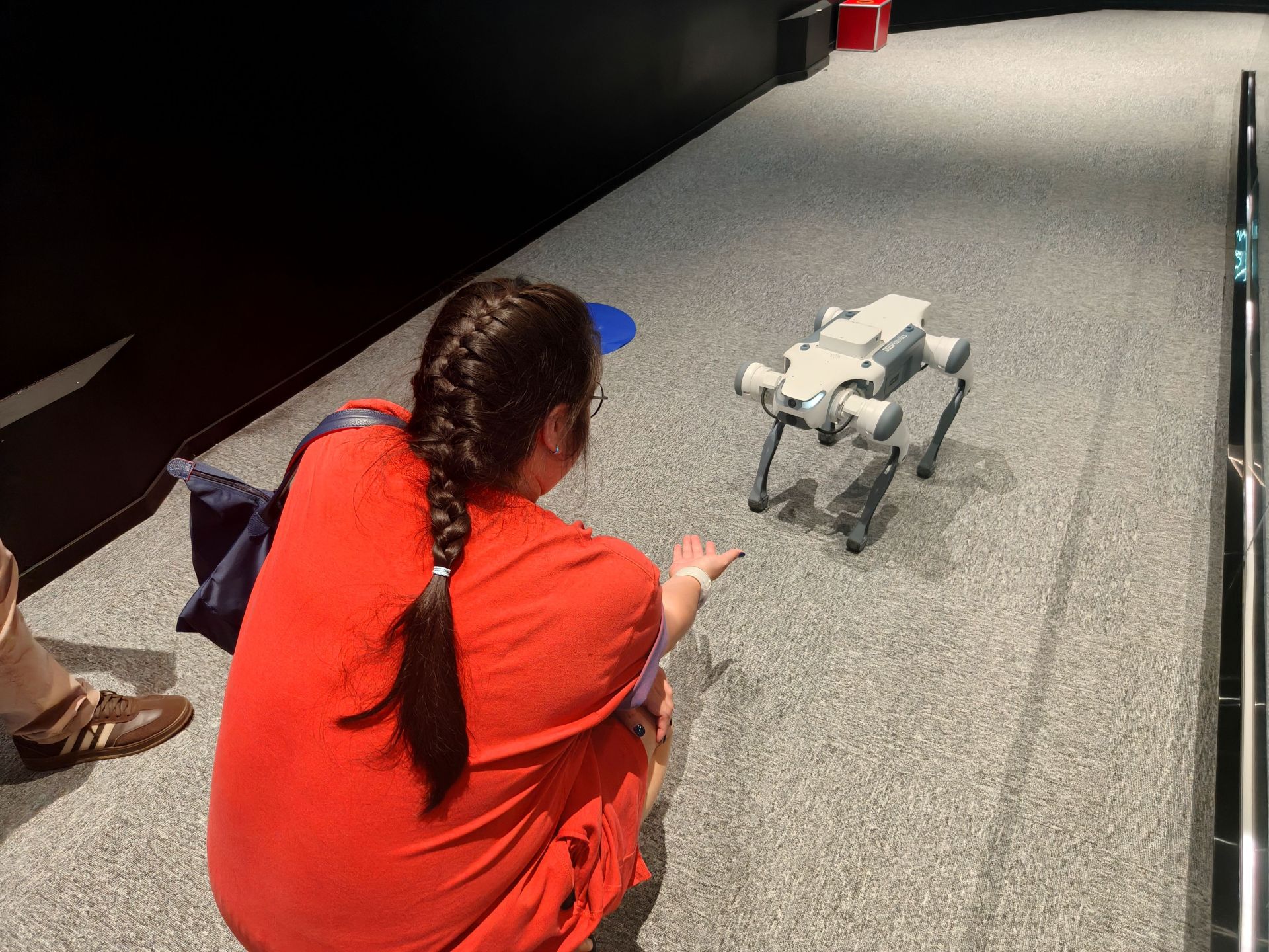 印尼游客与机器狗互动。