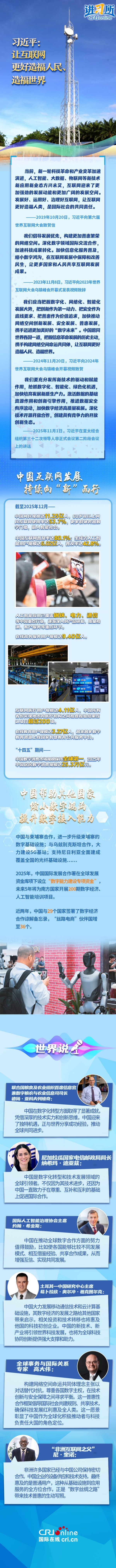 如今,从随处可见的移动支付到覆盖全国的电子政务系统;从AI安全治理到搭建“数字丝绸之路”……中国在迈向网络强国的同时,兼顾发展中国家利益与全球共同需求,打破发达国家主导数字规则制定的格局,让更多国家和人民共享互联网发展成果。
