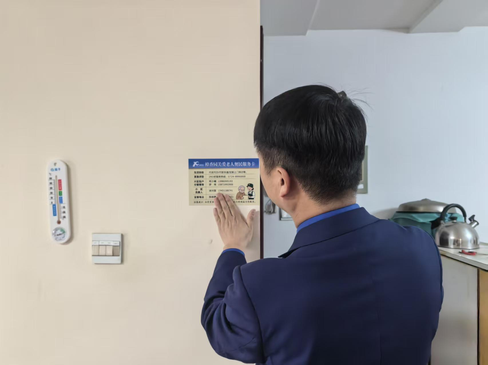 志愿者逐户上门走访,认真填写《高龄独居老人信息卡》,仔细完善健康状况、紧急联系人等相关信息,建立“一人一档”精准服务台账。针对老人出行不便、日常采买困难等实际问题,现场张贴便民服务卡,提供代买代办贴心帮扶。本次活动共走访高龄独居老人13户20人,实现精准关爱全覆盖。