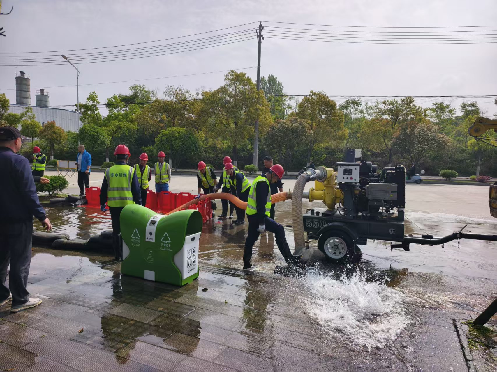 此次演练全面落实“市城管委-区城管局-市水务集团”三级联动机制,实现统一调度、高效联动。在凤凰大道与凤凰五路交汇处北侧,模拟强降雨天气导致城区主干道低洼路段深度积水、交通阻断的突发险情,30名专业抢险人员、10台运维抢险车辆快速响应、准时集结,挡水屏障、防汛沙袋、大功率移动泵车等应急物资悉数到位,各参演单位分工协作、规范作业,依次完成现场警戒围挡、管网疏通清淤、积水大流量强排、管线安全防护全流程实操,各环节衔接顺畅、处置高效,仅用时20分钟便彻底排清道路积水,恢复正常通行,圆满完成既定任务。