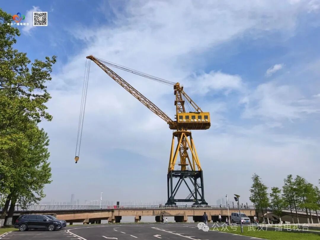 胡昇指着青山江滩的一个大吊车介绍道:“这个吊车当年被称为‘万里长江第一吊’,因为它能够起重60吨的重物,整个万里长江就它了。为了建设武钢必须要这么重的设备,所以叫做‘万里长江第一吊’。现在它完成了任务,我们要长江大保护,在建这个江滩的时候,有意识地就把它保留下来。”
