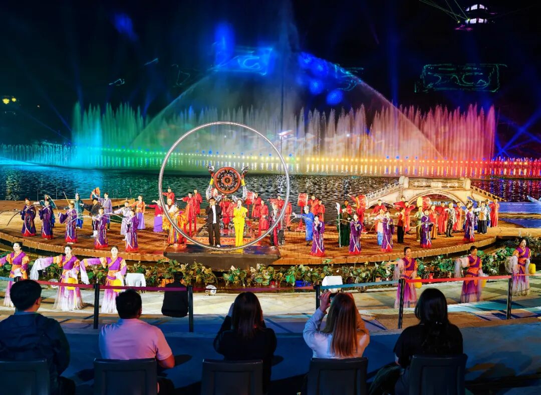 4月24日19时30分,荆门园博园水秀表演准时上演,灯光、音乐、园林景观交织在一起,打造出一场视觉与听觉的盛宴。学子们散步园内,晚风拂面,惬意欣赏着美景。
