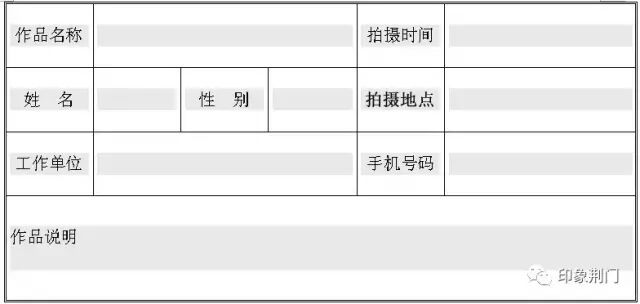 所有参赛作品,请注明作品名称、作者名字、拍摄地点及联系方式后发送到邮箱:365882638@qq.com或加入荆门摄影公社群(89902326),微信公众号“科普荆门”“印象荆门”(yinxiangjingmen),联系电话13886939199(朱记者)。大赛征稿时间:即日起至2017年8月30日。入选作品将分10期刊登在荆门晚报摄友天地栏目。