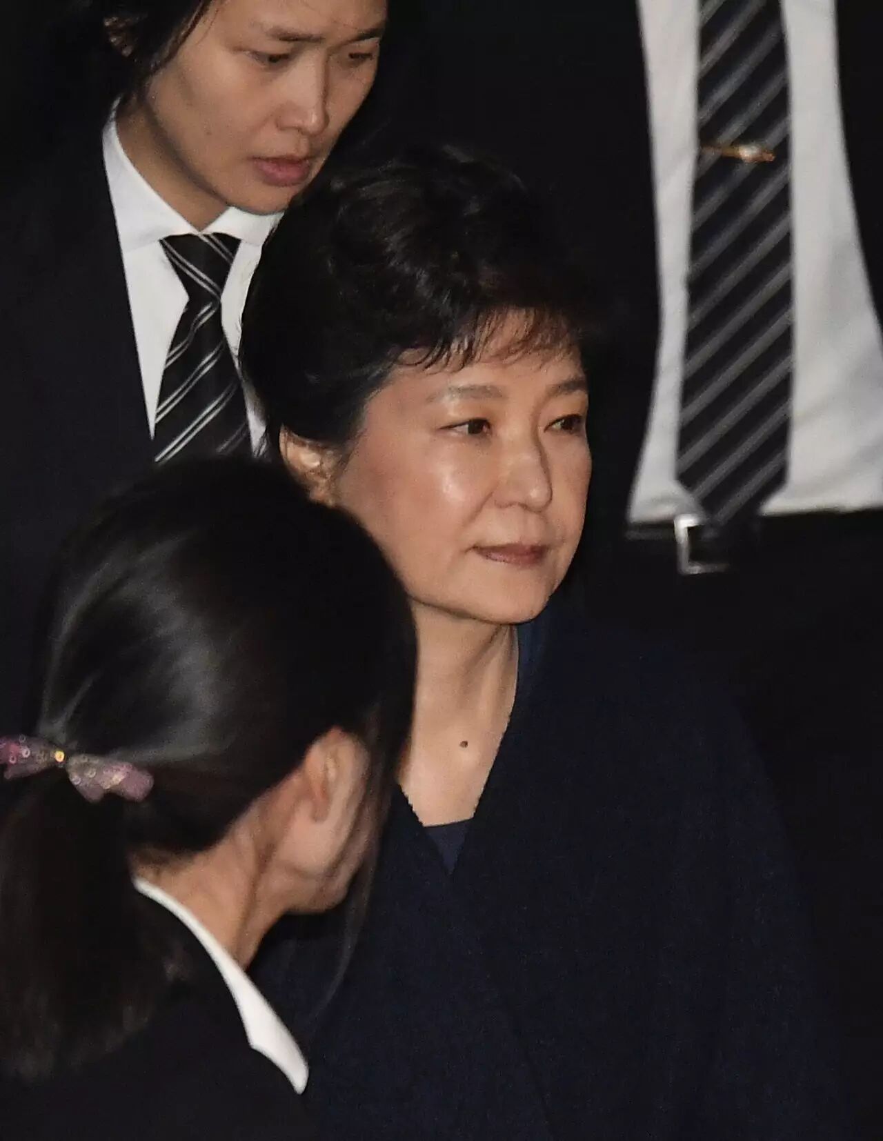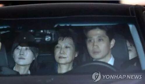 逮捕令被签发大约两个小时后,朴槿惠离开检方指定地点,在两名女性调查人员的押送下,被押往拘留所。